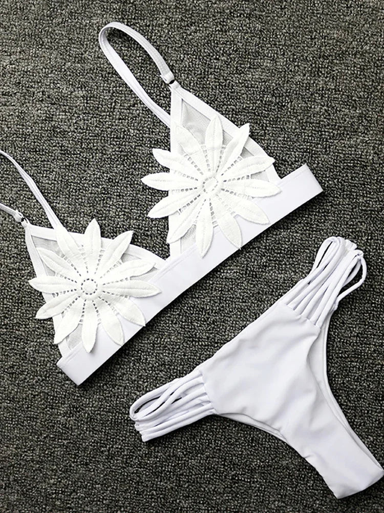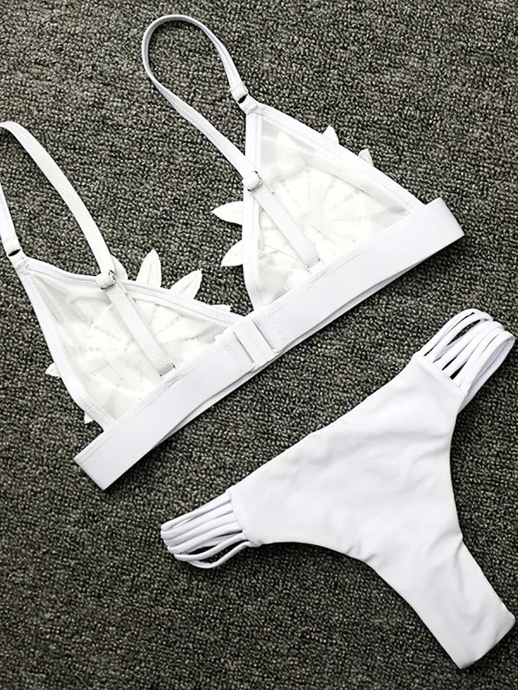Fitshinling Mesh Flower Swimsuits Women Swimwear 2024 Summer Sexy Hot Bikini Sets Ladies Beachwear Bohemian Fashion Bathing Suit